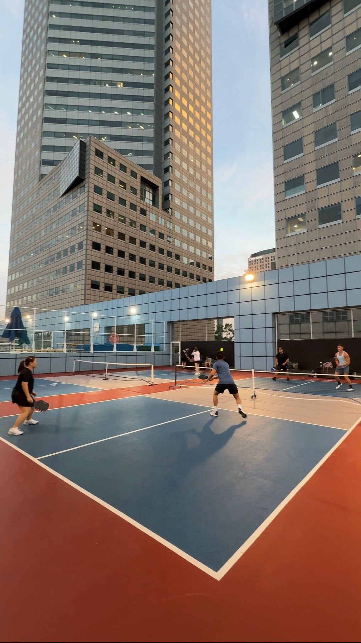 Locate Delifrance on Level 2 between Towers 2 and Tower 3. Access Lobby M2b service lift. Take the lift to level 4 to access the Pickleball Courts..